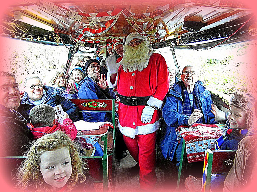 Running three one-hour Santa Special trips each day, we carried over 300 passengers on a beautifully decorated Birdswood. They feasted on generous quantities of traditional fayre and joined in singing carols and Christmas songs. Children visited Santa in his back cabin 'grotto' where the stove glowed gently, and went away with one of the wonderful 'Muddy Waters' series of books and a bag of chocolate coins.