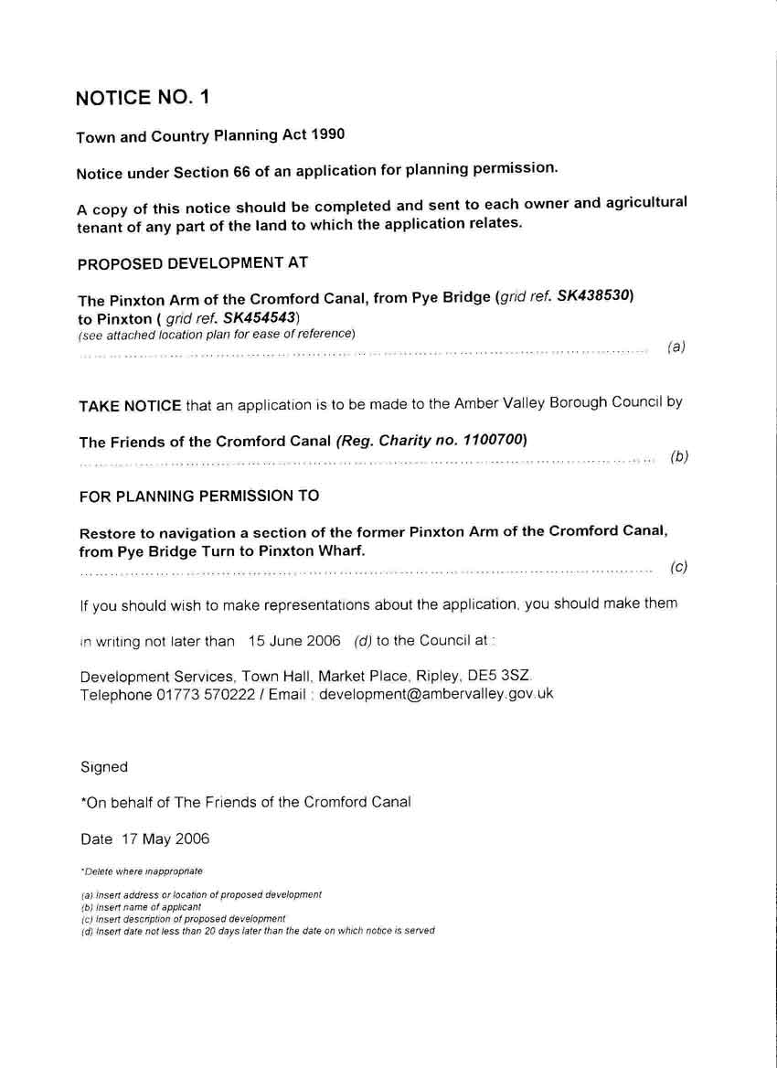 On 17th May 2006, the FCC applied for Planning Permission to extend the Pixton Arm across the Smotherfly Opencast Site. All the relevant documentation (apart from title pages and the index) are now available to view from this page.